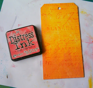 Take some Worn Lipstick Distress ink and blend along all the edges of the tag and then stamp the text, as shown.